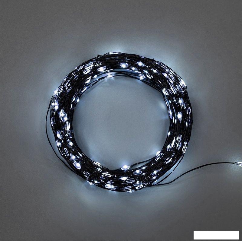 Гирлянда Роса длиной 20 метров представляет собой тонкий провод зеленого цвета, на котором горят и мерцают маленькие светодиоды, напоминающие капли росы. | |