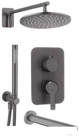 | Комплектация | верхний душ, ручной душ (лейка), держатель лейки, шланг, смеситель, излив для ванны |