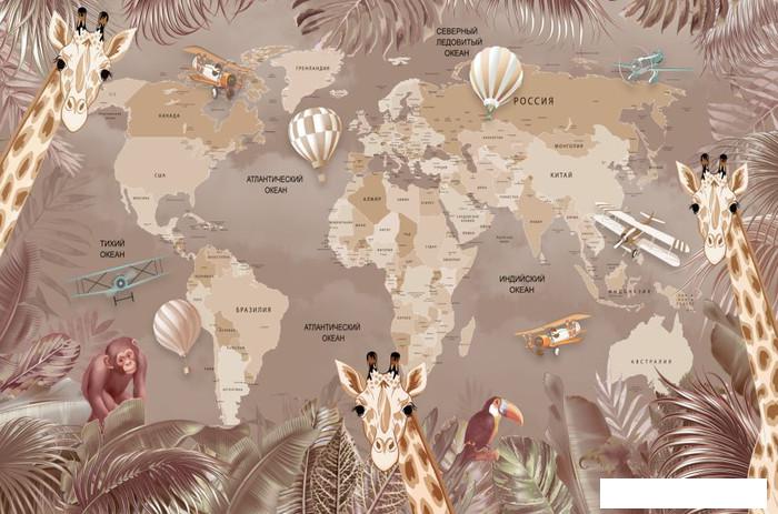 Описание Краткая информация об отличиях товара от конкурентных моделей и аналогов, сведения о позиционировании на рынке, преемственности и др. ✅ Фотообои листовые ФабрикаФресок Карта с жирафами / 324265 (400x265) |