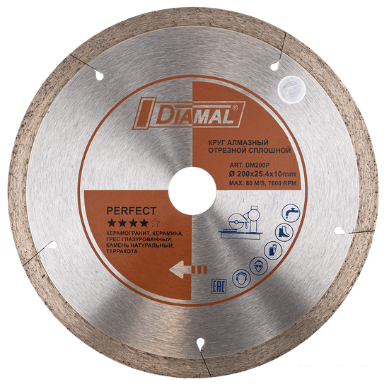 Описание Краткая информация об отличиях товара от конкурентных моделей и аналогов, сведения о позиционировании на рынке, преемственности и др. Диск алмазный отрезной PERFECT DM200P с тонкой режущей кромкой обеспечивает чистый и тонкий рез греса глазурованного, керамики, терракоты, камня натурального. Применяется на плиткорезах и камнерезах. |