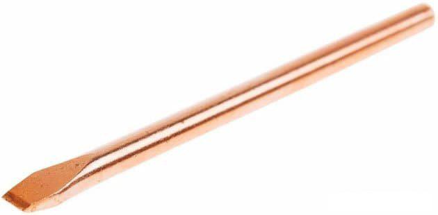 Жало медное представляет собой цилиндрический стержень, имеющий с одного конца один из множества типов форм. Медь — это идеальный материал для изготовления паяльного жала с точки зрения теплопроводности. Кроме этого, медное жало имеет отличную теплоемкость. Подавляющее большинство паяльников комплектуются именно такими наконечниками. | |