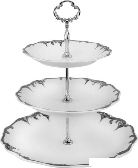 ✅ Ваза-этажерка Lenardi Argento 666-406 изготовлена из белоснежного фарфора с рельефной и объемной отделкой серебром. |