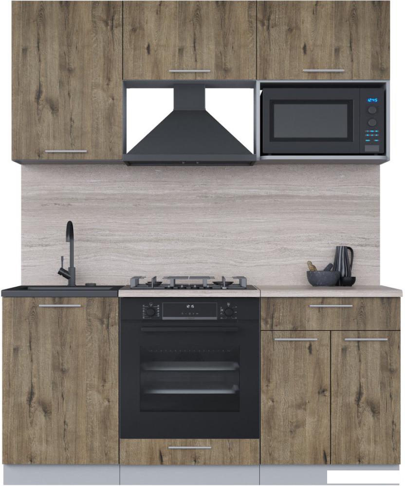 Описание ✅ Готовая кухня Интерлиния Мила 1.7 ВТ имеет отделения из дуба веллингтон, а также серый травертин. | |