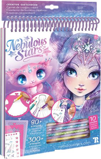 ✅ Набор для творчества Nebulous Stars Nebulia представляет собой неоновый скетчбук с набором трафаретов, рисунков для втирания, наклеек и техник рисования от звездочки Nebulia. |