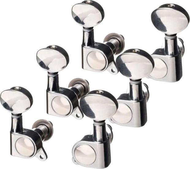 Описание Краткая информация об отличиях товара от конкурентных моделей и аналогов, сведения о позиционировании на рынке, преемственности и др. Комплект колковой механики «гровер» вертикальной установки хромированных с хромированной круглой ручкой, закрытого типа, литой корпус. Передаточное число: 1:15. |