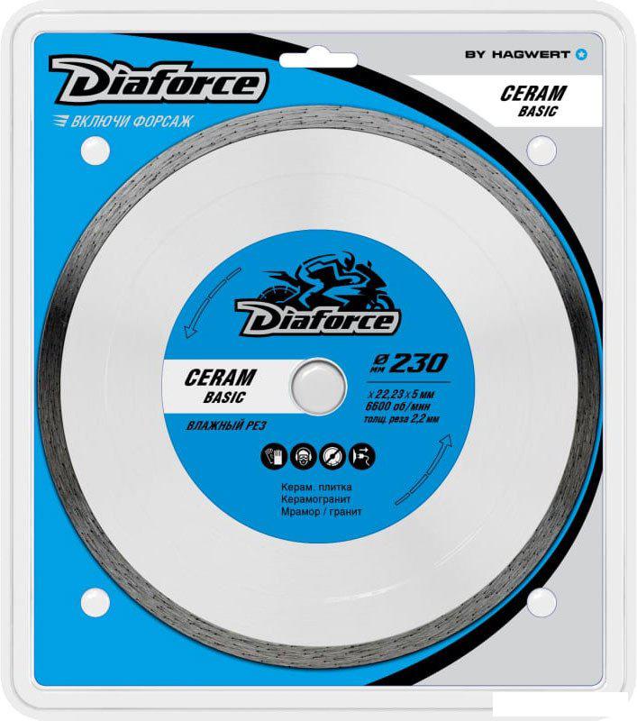 Описание ✅ Алмазный отрезной диск Diaforce Ceram Basic 513230 предназначен для обработки гранита, плитки, мрамора и керамогранита. | |