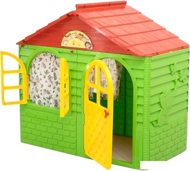 Описание Краткая информация об отличиях товара от конкурентных моделей и аналогов, сведения о позиционировании на рынке, преемственности и др. Красивый детский игровой пластиковый домик изготовлен из плотного, безопасного и яркого пластика. В домике есть окна и двери округлой арочной формы. Крыша домика сделана в виде имитации черепицы. |
