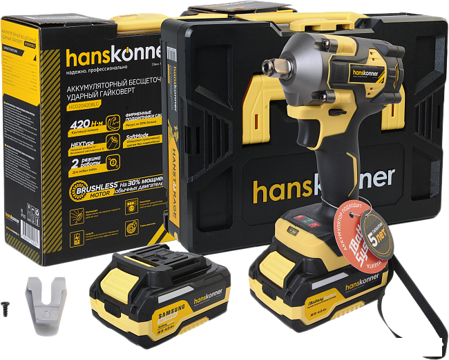 Описание Краткая информация об отличиях товара от конкурентных моделей и аналогов, сведения о позиционировании на рынке, преемственности и др. ✅ Гайковерт Hanskonner HCD20420BLC - мощный бесщеточный инструмент для закручивания болтов и гаек с крутящим моментом до 420 Нм. |