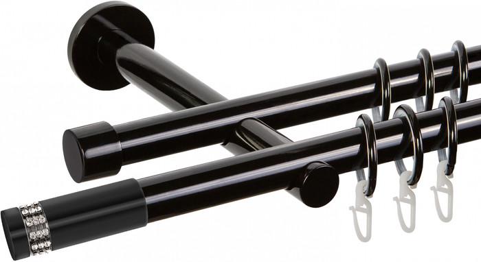 Круглый карниз представляет собой трубу, на которую навешиваются крепления. Зачастую такие карнизы имеют декоративные заглушки или наконечники на концах труб. |