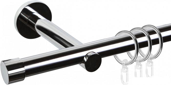 Круглый карниз представляет собой трубу, на которую навешиваются крепления. Зачастую такие карнизы имеют декоративные заглушки или наконечники на концах труб. |