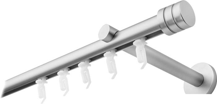 Круглый карниз представляет собой трубу, на которую навешиваются крепления. Зачастую такие карнизы имеют декоративные заглушки или наконечники на концах труб. |
