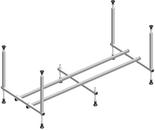 Каркас включает в себя опоры для чаши в каждом углу ванны, промежуточные ребра жесткости, а так же регулируемые по высоте ножки. |