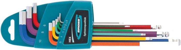 Набор ключей имбусовых HEX, 1.5–10 мм, S2, магнит, экстра-длинные с шаром. |