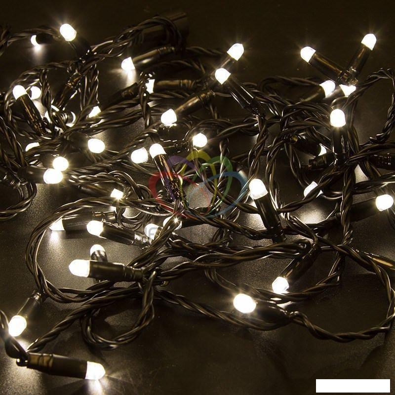 Гирлянда «Нить» представляет собой общий провод с последовательно расположенными коротенькими отводами, направленными в разные стороны. На концах этих «отростков» расположены яркие светодиоды. Общая длина гирлянды составляет 10 метров. | |