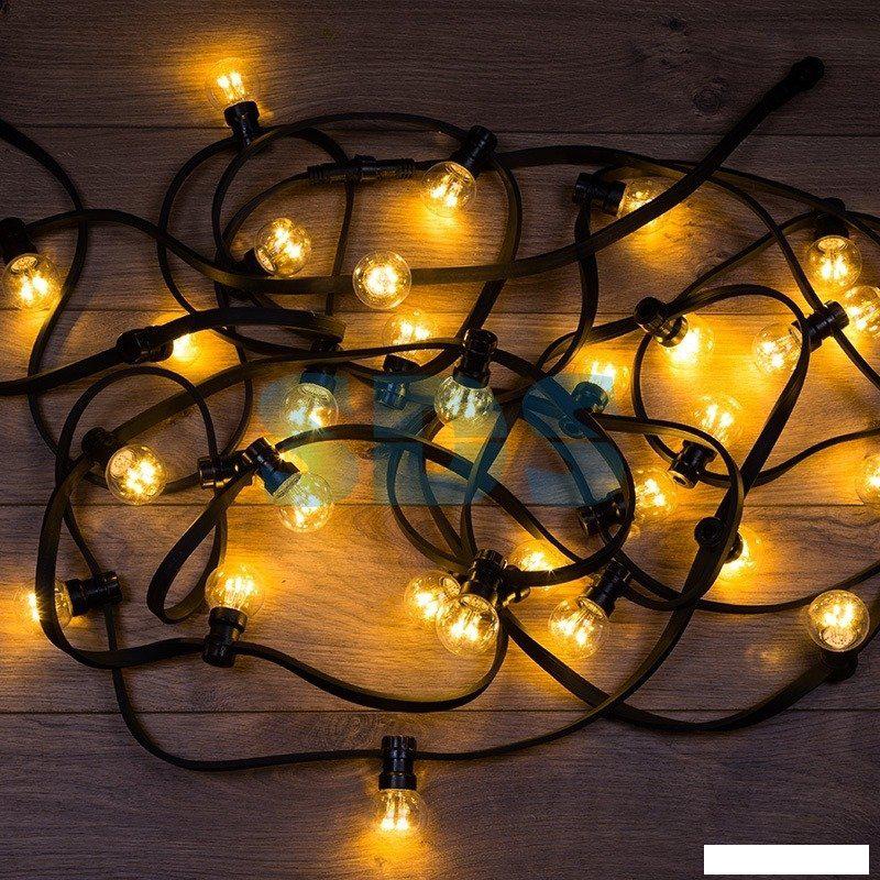 Гирлянда "LED Galaxy Bulb String" внешне схожа с гирляндой Belt-light. Отличается она тем, что уже готова к использованию, на шине через каждые 33 см уже смонтированы прозрачные лампочки диаметром 45 мм, в каждой из которой есть 6 диодов. Благодаря своей степени защиты гирлянда может быть использована как в помещении, так и на улице, даже в сильный мороз. | |