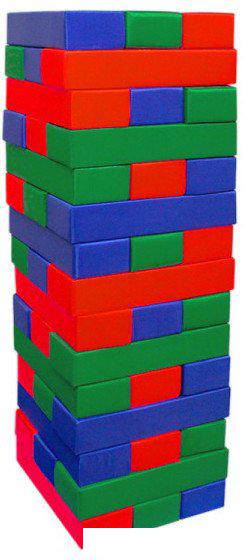 Описание ✅ Набор мягких модулей Большая Дженга состоит из мягких брусков, чехлы которых сшиты из тента ПВХ, а наполнитель - прочный поролон (ППУ — пенополиуретан плотностью 19.3 кг/м3). | |