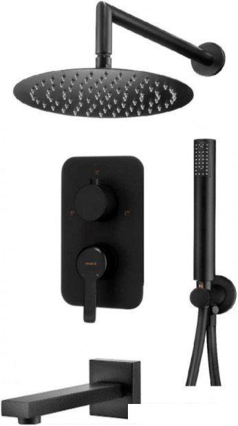 | Комплектация | верхний душ, ручной душ (лейка), держатель лейки, шланг, смеситель, излив для ванны |