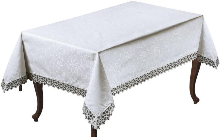 ✅ Жаккардовая скатерть из коллекции Erguvan от известного турецкого бренда DO&CO, украшенная изысканным гипюром по краю. |
