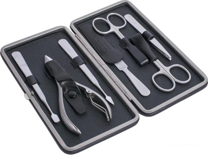 | Комплектация | ножницы для кутикулы и ногтей, два шабера в виде копья и лопатки, наклонный пинцет, металлическая пилочка и кусачки для ногтей |
