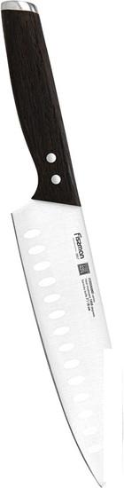 Описание Краткая информация об отличиях товара от конкурентных моделей и аналогов, сведения о позиционировании на рынке, преемственности и др. ✅ Нож Сантоку - многофункциональное изделие, предназначенное для шинковки овощей, тонкой нарезки, разделки мяса и рыбы. Углубления на поверхности облегчают использование, в них при нарезке остается воздух, поэтому продукты не налипают на лезвие. Кухонные ножи серии Ferdinand выполнены из высоколегированной немецкой стали X50Cr15MoV, закаленной до 55 единиц по шкале Рокуэлла, обладают повышенной прочностью и подходят для частого использования. Лезвия имеют двухстороннюю симметричную заточку по всей длине режущей кромки, что обеспечивает легкую нарезку и разделку. Рукоятки из натурального африканского дерева Wenge имеют элегантную форму и обеспечивают надежный захват. Изготовленные по особой технологии они очень удобны и эргономичны, благодаря этой конструкции ножи безупречно сбалансированы и хорошо лежат в руке. |