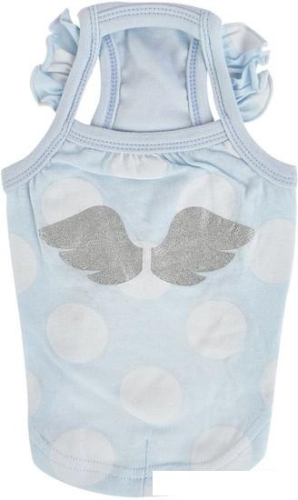 Описание Краткая информация об отличиях товара от конкурентных моделей и аналогов, сведения о позиционировании на рынке, преемственности и др. Нежная, легкая, летняя футболка с рюшами на плечах в крупный белый горох, украшена двумя серебристыми крылышками на спинке и сердечком на груди. Смотрится стильно как самостоятельный предмет гардероба, так и в комплекте с юбочкой или штанишками. Футболка очень мягкая, комфортная и уютная. Ткань дышит, что позволяет носить изделие в жаркие дни. Изделие рассчитано на собак миниатюрных и маленьких пород, легко стирается и чистится от шерсти. |