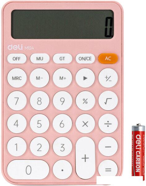 ✅ Калькулятор Deli M124 (розовый) - компактный настольный калькулятор с 12-разрядным дисплеем. |