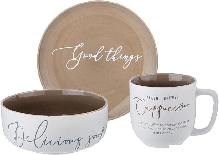 | Состав набора | кружка (1 шт.), салатник (1 шт.), тарелка закусочная (десертная) (1 шт.) |