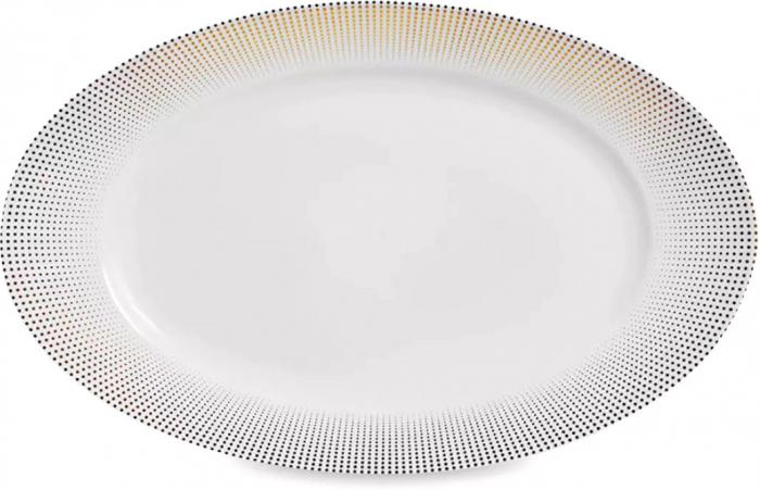 Описание Краткая информация об отличиях товара от конкурентных моделей и аналогов, сведения о позиционировании на рынке, преемственности и др. Коллекция столового фарфора Meridien Gold тоже декорирована в радиальной технике. Основным элементом ее отделки являются токи, нанесенные глазурью, которые расходятся по прямым лучам от центра предмета — меридианам — увеличиваясь в размере ближе к каемке. В результате создается удивительная иллюзия геометрического узора, который под одним углом кажется состоящим из параллельно расположенных арок, а под другим — из тонких кольцевых линий._x000D_ |