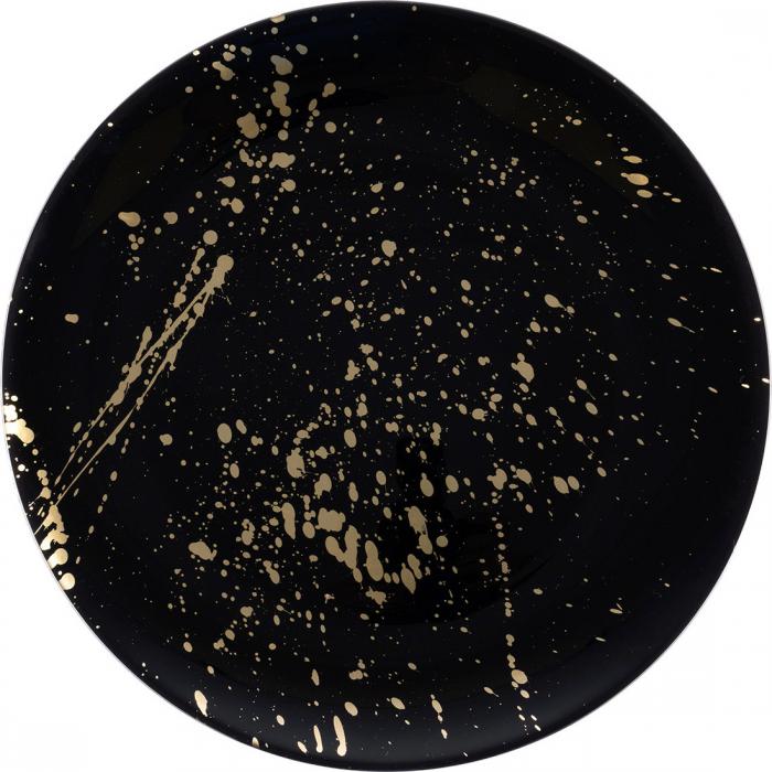 Описание Краткая информация об отличиях товара от конкурентных моделей и аналогов, сведения о позиционировании на рынке, преемственности и др. Посуда из стекла практичная, не впитывает запахи и влагу, легко отмывается от загрязнений. Стеклянная посуда ручной работы украшает интерьер и придает ему особую легкость и изящество. Каждое изделие, сделанное вручную, обладает неповторимостью и уникальностью. Тарелка выполнена в элегантном черном цвете с золотистой россыпью. Это декоративный элемент для изысканной сервировки стола. Сервировочную тарелку используют как красивую подставку под другую посуду: под салатные тарелки, креманки, для использованных приборов и т.д. Тарелки серии Splash представлены в разных размерах, из них вы можете собрать целый набор в едином стиле._x000D_ |