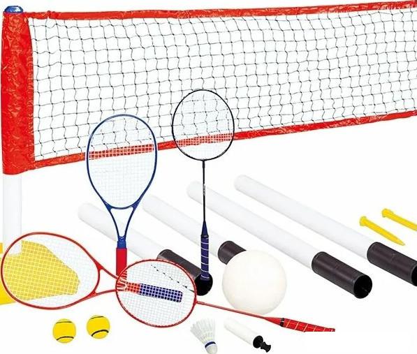 | Комплектация | мяч/шар (2 шт для тенниса), ракетки (2 шт для тенниса, 2 шт для бадминтона), воланчик, сетка. |