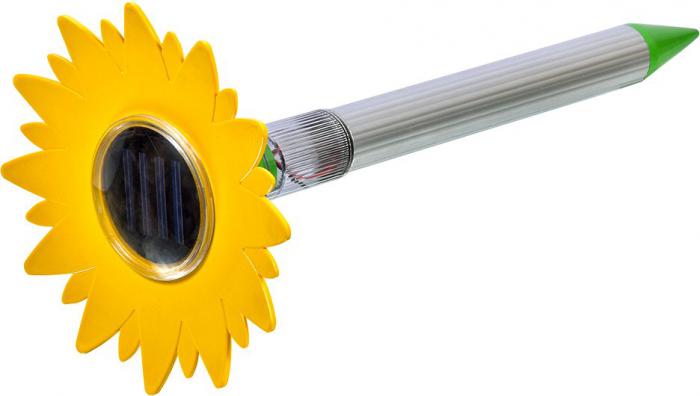Описание Предназначение: для отпугивания кротов. Эффективное универсальное устройство для борьбы с кротами, полевыми мышами, землеройками и другими землянымим вредителями. Встроенные солнечные батареи сами заряжают установленный в приборе аккумулятор, позволяя забыть о смене батареек. Отпугиватель, выполненный в форме подсолнуха, станет приятным украшением дачного участка. | |