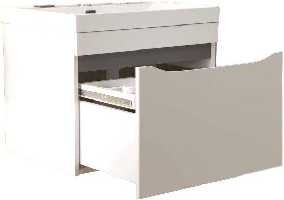 В оформлении мебели для ванной комнаты используют материалы, устойчивые к повышенной влажности. Это достигается дополнительной обработкой и пропиткой материала специальным веществом (меламином), обеспечивающим защиту от разбухания древесины под влиянием воды. |