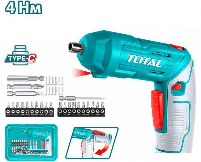 Описание Краткая информация об отличиях товара от конкурентных моделей и аналогов, сведения о позиционировании на рынке, преемственности и др. ✅ Аккумуляторная отвертка TOTAL TSDLI04425 – идеальный инструмент для выполнения мелких монтажных и демонтажных работ. |