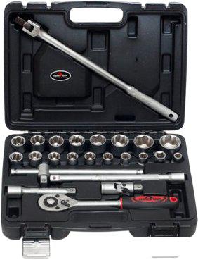 | Комплектация | - Головки (6 граней) 1/2" – размеры: 10, 11, 12, 13, 14, 15, 16, 17, 18, 19, 20, 21, 22, 23, 24, 27, 30 и 32 мм - Вороток Т-образный - длина 250 мм и присоединительный квадрат 1/2" - Шарнирный вороток - длина 430 мм и присоединительный квадрат 1/2" - Кардан 1/2" - Трещотка 1/2" - Удлинители 1/2” – это два удлинителя длиной 125 мм и 250 мм |