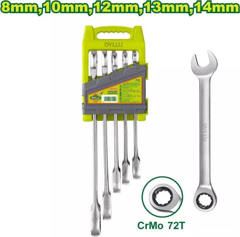 | Комплектация | Набор гаечных ключей с трещоткой 8-14мм - 5шт. (8мм, 10мм, 12мм, 13мм, 14мм); Пластиковый подвес для хранения - 1 шт. |