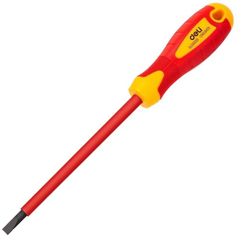 ✅ Диэлектрическая шлицевая отвертка DELI DL5151251 с размерами 5,5x125 мм обеспечивает надежную защиту при работе с электрическими устройствами благодаря сертификату VDE до 1000 В. | |
