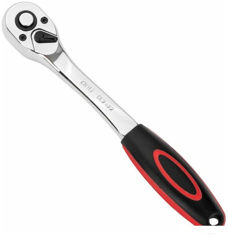 Ключ-трещотка DELI DL2422 3/8" 200 мм, двухкомпонентная рукоять, 72 зуба, шестерня Cr-Mo, быстросъемная 104475 используется для работ с резьбовыми соединениями в процессе различных ремонтных, монтажных и сборочных работ. Рабочая часть ключа выполнена из прочной и качественной хромомолибденовой стали, что обеспечивает долговечность и надежность. Двухкомпонентная рукоять обладает продуманной эргономикой для продолжительной работы. Ключ совместим с торцевыми головками, которые имеют типоразмер крепления 3/8". | |