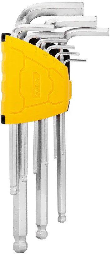 Набор шестигранных ключей DELI DL3088 с шаром 98334 используется для работ с шестигранным крепежом. Ключи изготовлены из высококачественной хромованадиевой стали, что обеспечивает прочность и долговечность. Шаровой наконечник служит для удобной работы в ограниченном пространстве. Удобная пластиковая рамка облегчает хранение и переноску шестигранных ключей. | |