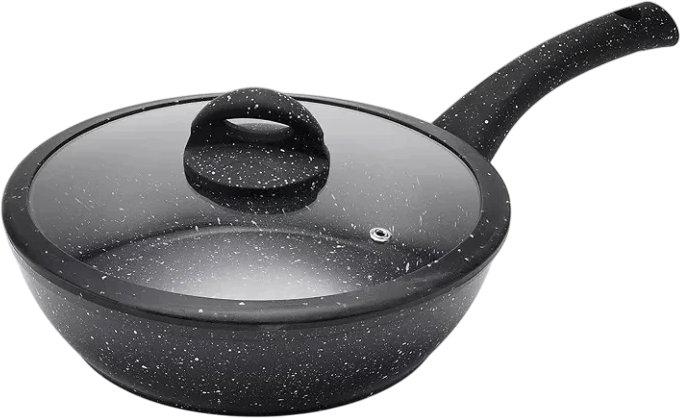 ✅ Сковорода изготовлена из высококачественного алюминиевого сплава, что обеспечивает долговечность и отличные кулинарные свойства. | |