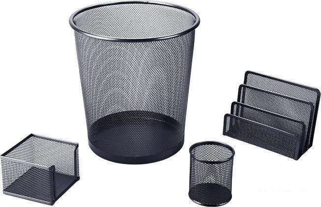 Настольный набор это пример изящности, лаконичности и функциональности. У подставок имеются мягкие подушечки на дне, предотвращающие скольжение и повреждения поверхности, а прочный корпус изготовлен из высококачественного металла. Сетчатое исполнение предотвращает образование пыли внутри. | |