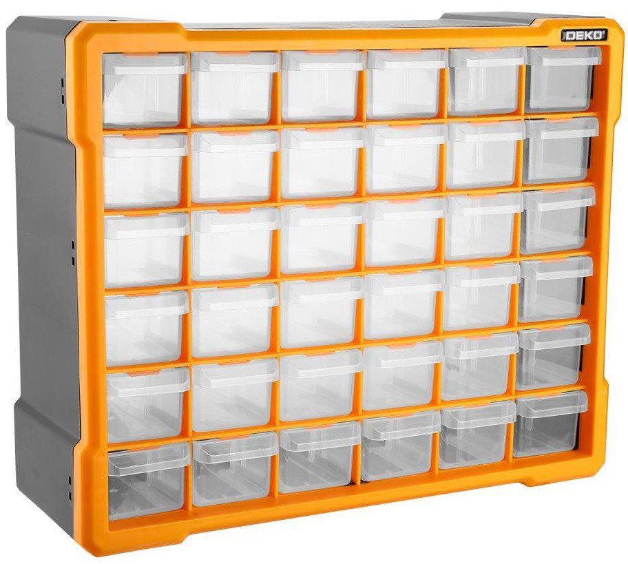 ✅ Система хранения DEKO RDKPS36 представляет собой вертикальный кейс с удобными выдвижными ящиками, идеально подходящий для хранения и транспортировки крепежных изделий. | |