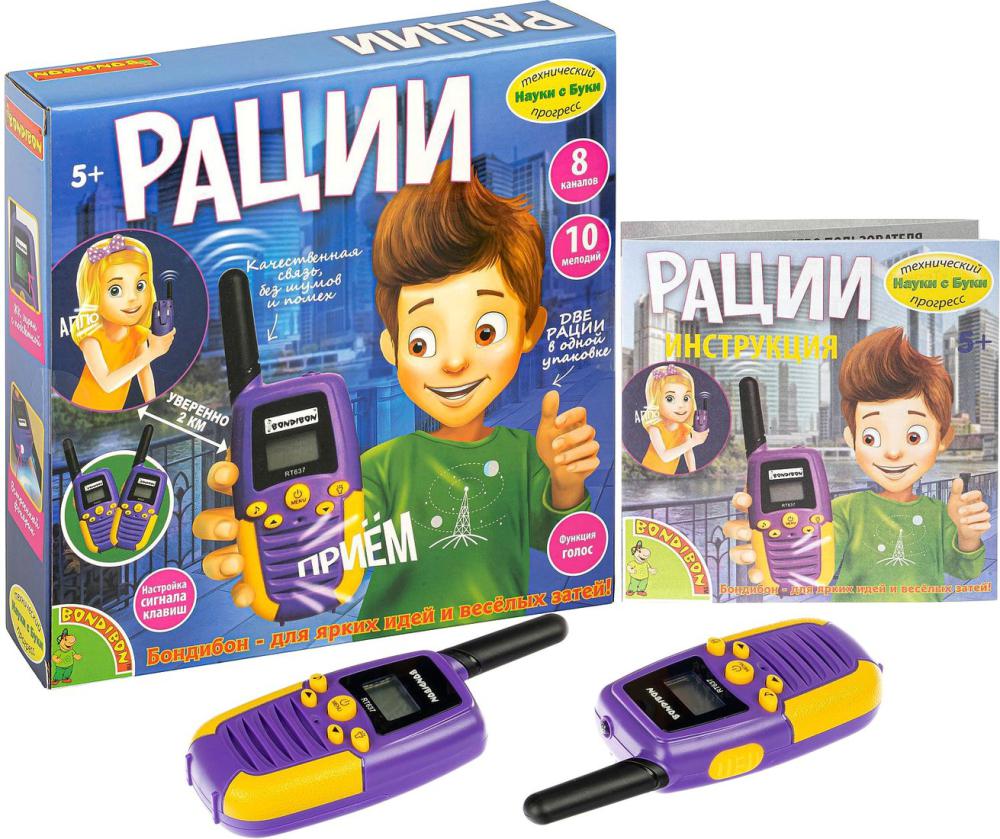 Со специальным переговорным устройством - набором раций с ЖК-дисплеем от Bondibon, ребенок погрузится в захватывающую игру, сможет держать связь с другом или родителями на расстоянии до 2 км, играя в шпионов или проходя квесты.Рация имеет 10 встроенных мелодий и дополнительные функции блокировка кнопок, выбор звукового сигнала клавиш, экономия заряда батареи, распознавание голоса, фонарик, подсветка дисплея.Для передачи сообщения необходимо нажать и удерживать кнопку на боковой поверхности рации - режим говорить, чтобы принимать и слышать сообщение кнопку необходимо отпустить - режим слушать.Для работы устройства понадобятся 8 батареек типа ААА не входят в набор.Количество каналов 8, полоса радиочастот 446,0 446,1 МГц, мощность передатчика 0,5 Вт.Состав набора 2 рации, 2 крепления для ремня, инструкция.Корпус рации изготовлен из безопасного прочного пластика. | |