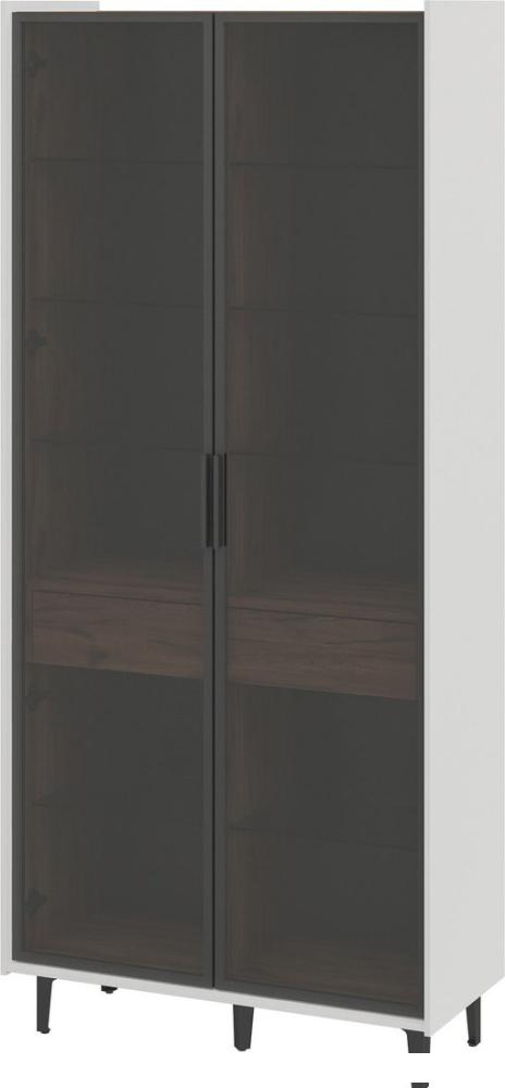 Описание ✅ Высокий комбинированный шкаф с двумя распашными витринами, украшенными тонированным стеклом. | |