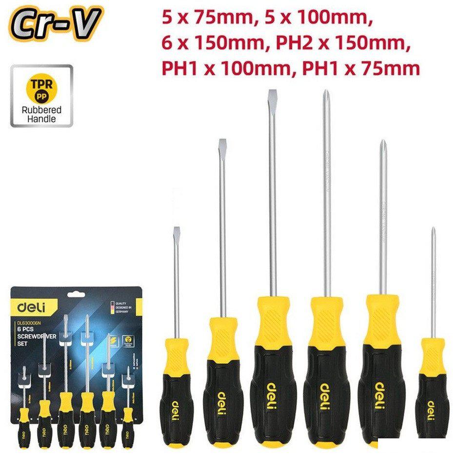 | Набор отверток Deli DL630006N 6шт SL5x75 + SL5x100 + SL6x150 + PH1x75 + PH1x100 + PH2x150 сталь Cr-V, двухкомпонентная прорезиненная рукоять | 49.30 | Продавец 1 | 05.12.2025 11:51 | Нал/Безнал. | 7-8 дней |