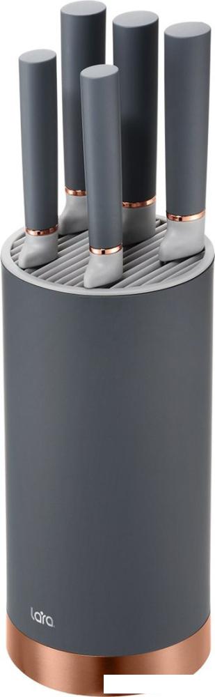 Стильный набор ножей LR05-73 – 6 в одном с дополнительной системой хранения. Ножи идеально сбалансированы, для безопасности оснащены больстером между рукоятью и лезвием. Для большего удобства ручки ножей имеют покрытие SOFTtouch. Устойчивая подставка обеспечивает правильное хранение, благодаря чему ножи долго остаются острыми. Для легкой очистки подставка оснащена съемной крышкой. В комплекте: подставка 110х220 мм с пластиковыми слотами и съемной крышкой, шеф-нож, нож для нарезки хлеба, универсальный нож, нож для очистки, нож для нарезки. | |