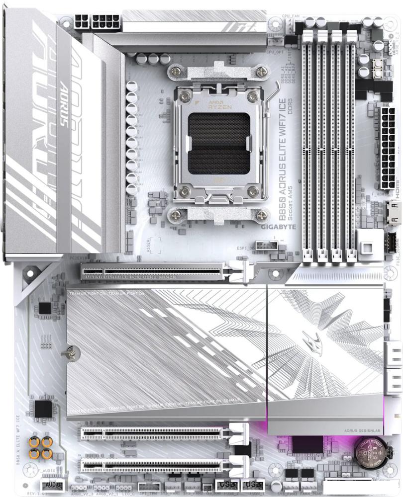 ✅Материнская плата GIGABYTE B850 AORUS ELITE WIFI7 в форм-факторе ATX построена на чипсете AMD B850 и предназначена для процессоров AMD Ryzen серий 7000, 8000 и 9000 с сокетом AM5. Плата поддерживает оперативную память DDR5 с максимальной частотой до 8200 МГц, объёмом до 256 ГБ и двухканальной архитектурой. Предусмотрена поддержка профилей разгона AMD EXPO и Intel XMP, а также конфигураций памяти 1Rx8/2Rx8/1Rx16. | |