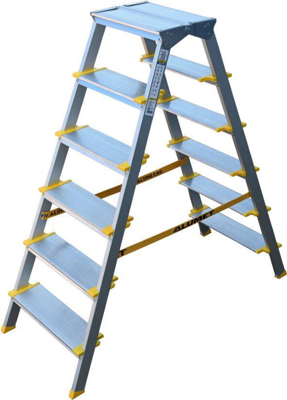 ✅ Двухсторонняя стремянка — это удобная и безопасная переносная лестница, которая сужается к верху и имеет две стороны для подъема. Она легко раскладывается, позволяя достигать высоты с комфортом. | |