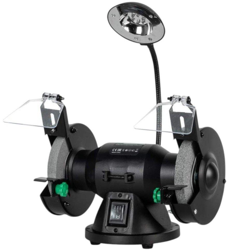| Комплект поставки | • электроточило • заточной круг (2 шт) • защитное стекло (2 шт) • упоры (2 шт) • руководство по эксплуатации • гарантийный талон |
