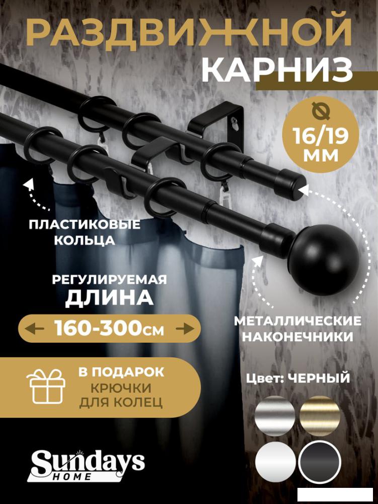 | Карниз для штор Sundays Home Сфера Раздвижной 16/19мм 2-х ряд (черный матовый, 1.6-3м) | - | Продавец 2 | 04.12.2025 15:50 | Нет в наличии | - |