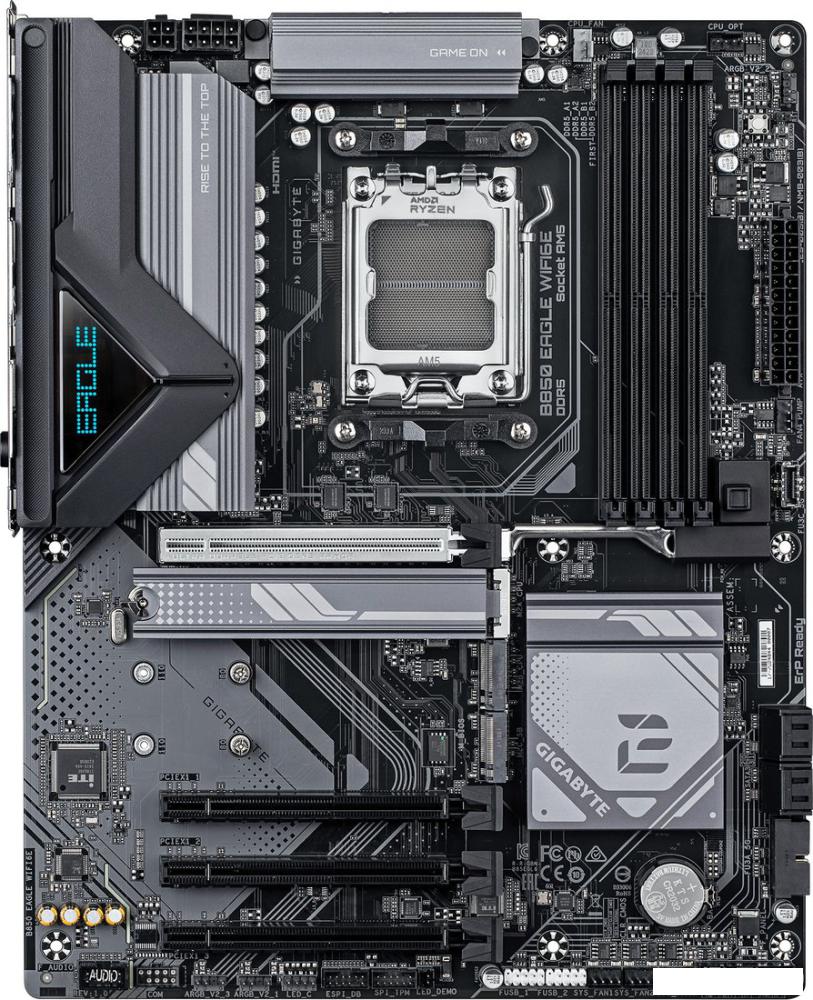 ✅ GIGABYTE B850 EAGLE WIFI6E - это современная материнская плата формата ATX, предназначенная для построения высокопроизводительных систем на базе процессоров AMD Ryzen серий 9000, 8000 и 7000. Используемый чипсет AMD B850 и сокет AM5 обеспечивают широкую совместимость с новейшими процессорами, а эффективная цифровая подсистема питания 8+2+2 фазы и массивные радиаторы гарантируют стабильную работу даже при высоких нагрузках. | |